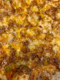Loads of shredded mozzarella & cheddar cheese, covering our fresh-cut fries, asked in our brick ovens.