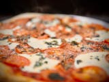 Pizza sauce, fresh mozzarella, Roma tomatoes, fresh basil, parmesan, baked in our brick ovens.
